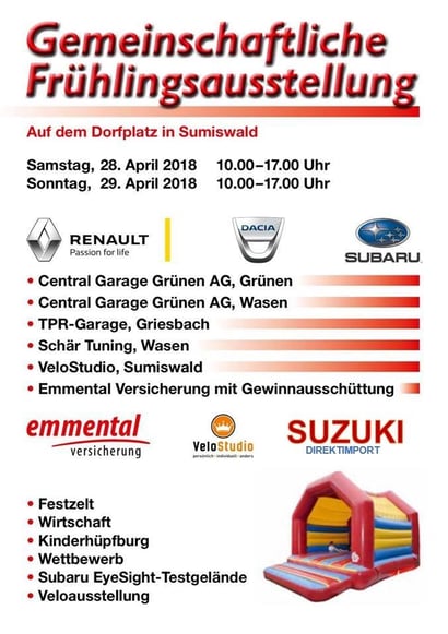 12. April 2018 Ausstellung Wie im 2017 mache ich ihm Frühling eine Ausstellung zusammen mit verschiedenen Garagisten auf dem Dorfplatz in Sumiswald. Ein Besuch lohnt sich! tagPlaceholderTags: