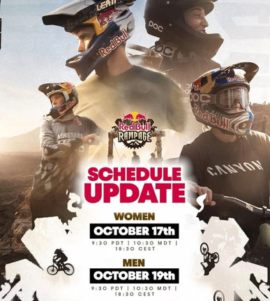 Wetterbedingt wurde der Redbull Rampageplan verändert. Neu starten die Herren am Sonntagabend anstelle von Samstagabend. Dadurch entfällt leider die vorgesehene Übertragung anlässlich der Rabatt-